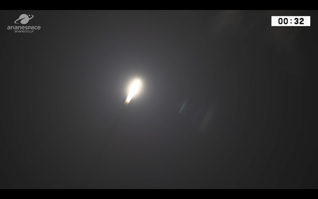 Liftoff occurred at 8:42 p.m. Eastern from the European spaceport in French Guiana on the northern coast of South America. The 1,100-kilogram satellite separated from the rocket in low Earth orbit about 55 minutes later.